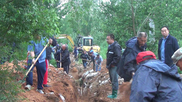 今年以來,高新園區至老合臺水廠段1萬伏高壓輸電線路多次出現故障,致使老合臺水廠停產。6月29日,因降雨導致該段輸電線路再次故障,造成老城區大面積停水。自來水公司積極與有關部門協商,決定重新鋪設一條電纜,以盡快恢復供電。自來水公司組織干部職工近百人,在經理李文生帶領下冒雨搶挖電纜溝。