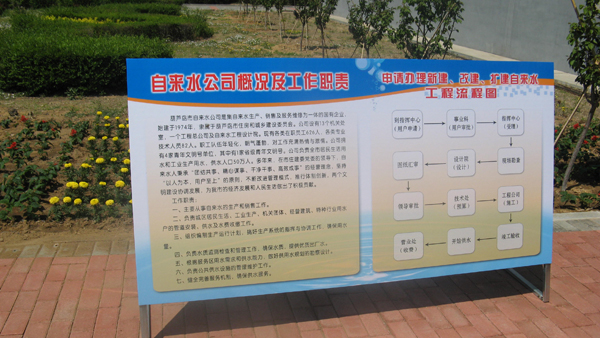 5月15日,自來水公司認真組織開展了“政務公開日”系列宣傳咨詢活動。公司在營業二分公司收費大廳設置了政策咨詢臺,通過宣傳展板、發放宣傳資料、提供政策咨詢等方式,向廣大市民公開公司概況、部門職能、用水咨詢、辦事流程、便民措施等,宣傳政務公開,服務用戶,對樹立公司對外的良好形象起到了積極作用。在公司領導的高度重視和各部門的大力配合下,此次活動達到了預期目的,收到了良好效果。