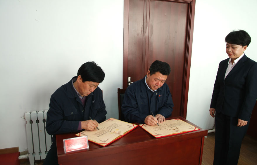 公司經理李文生分別與生產、營業、監察大隊等部門簽訂了責任狀。先進個人代表分別發言。