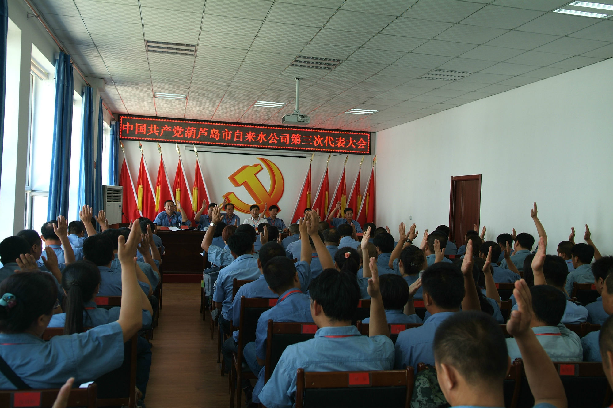 公司經理李文生宣讀《中國共產黨葫蘆島市自來水公司第三次代表大會選舉辦法》,經全體代表表決通過后,大會以無記名投票方式,差額選舉產生了9名公司第三屆黨委委員。在隨后召開的第三屆委員會第一次全體會議上,選舉張旭濱為公司黨委書記,李文生為副書記,并明確委員分工。張旭濱同志代表新當選的公司第三屆黨委講話,指明今后的工作思路和前進方向。接著,徐學良常務副經理宣讀大會決議。