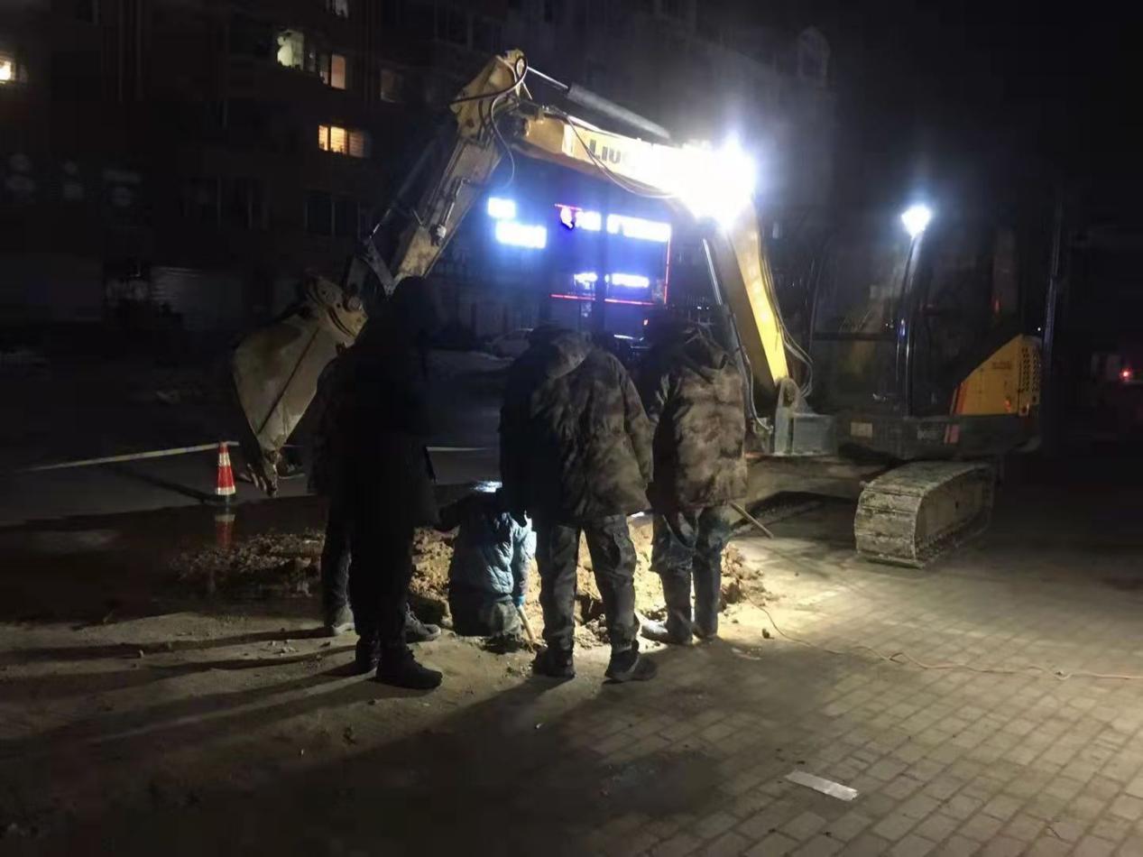 最強硬核搶修隊伍,實力擔當。2月16日下午17點47分,工程公司接到工單,位于騰揚嘉苑對面建筑安裝公司附近發現漏水現象。搶修人員立即趕往施工現場,在勘察現場具體情況的同時,對現場拉起警戒線。經勘查初步判斷此處漏損管線為DN200管線。搶修過程中采用鉤機、炮錘等對路面進行開挖,挖出一條長4米,寬1米,深2.5米左右的溝,因壓力關系,爆裂處噴射近5米高水柱,維修人員隨后采用水泵進行抽水,待具備施工作業條件時,工作人員用H200卡具進行固定,整個搶修用時約3小時,于晚9點搶修完畢。他們專業,他們頑強,他們無畏,他們敢拼,他們是一支名副其實的的硬核搶修隊伍。