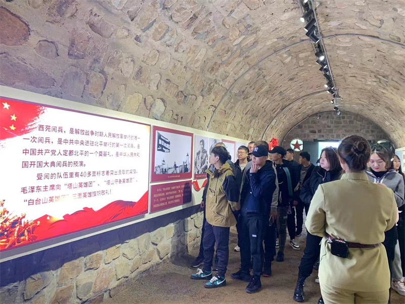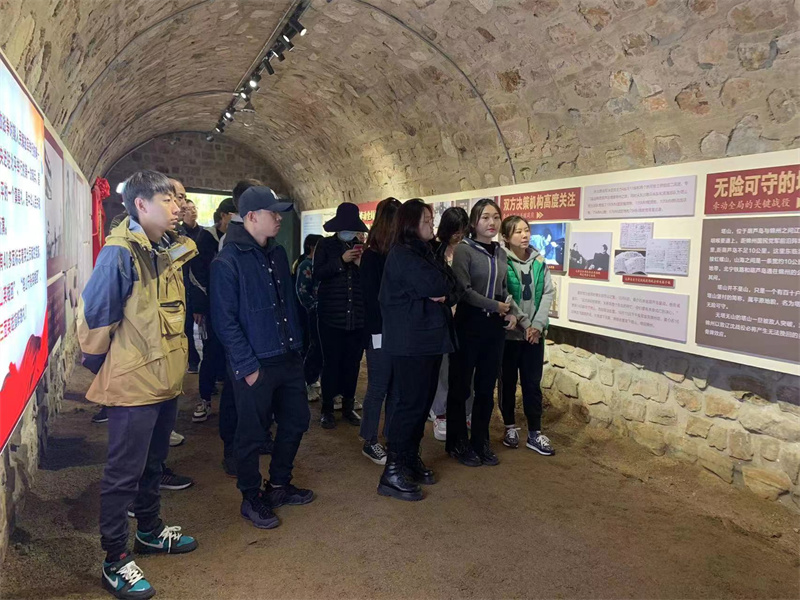 活動當(dāng)天,30名團(tuán)員青年在葫蘆古鎮(zhèn)開展為期一天的拓展訓(xùn)練活動。整個活動分兩部分進(jìn)行,首先全體人員參觀了塔山精神宣教館,在講解員的帶領(lǐng)下,在“防空洞”內(nèi)通過圖文介紹、實(shí)物展示,回望了先烈們?yōu)橹腥A民族的獨(dú)立和解放英勇不屈、浴血奮戰(zhàn)的動人事跡,切實(shí)體會到了革命先烈不屈不撓、勇于斗爭的革命精神以及不畏犧牲、前仆后繼的堅定革命信仰,對誕生在葫蘆島大地上的“顧全大局、嚴(yán)守紀(jì)律、勇于犧牲、敢打必勝”的塔山精神有了更加深刻的認(rèn)識。