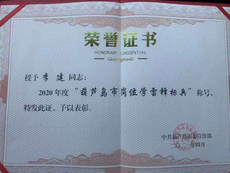 近日,市自來水公司綜合部員工李建榮獲葫蘆島市“崗位學(xué)雷鋒標(biāo)兵”榮譽(yù)稱號(hào)。