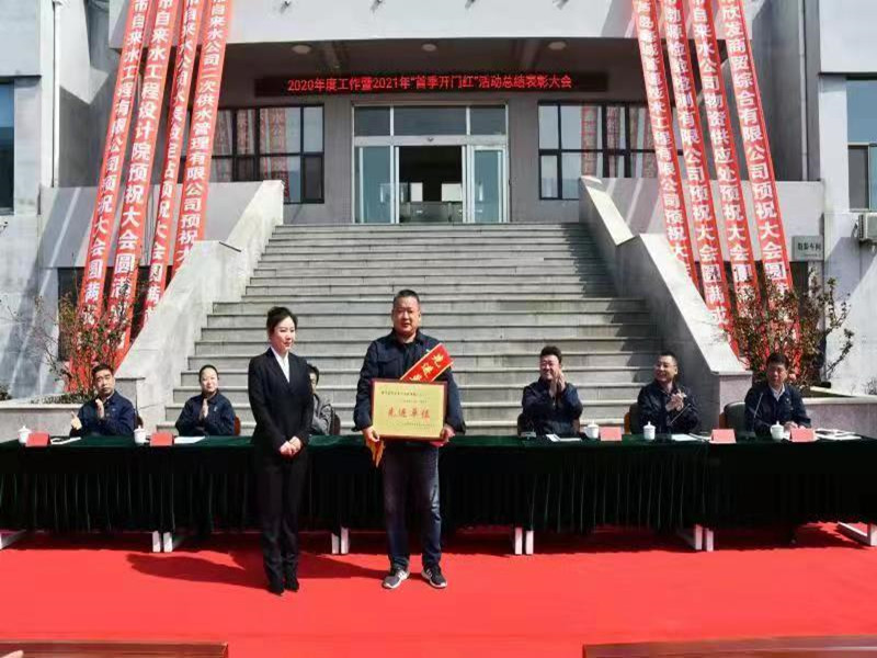 會上,公司經理李文生代表領導班子做2020年度工作報告,總結2021年首季開門紅工作,部署2021年工作;副經理馬旭宣讀了表彰決定,對獲獎集體和個人進行頒獎,隨后,獲獎集體和個人代表分別發言。表彰結束后,公司經理李文生分別與生產、營業及自來水工程有限公司等單位簽訂2021年經營指標責任狀。
