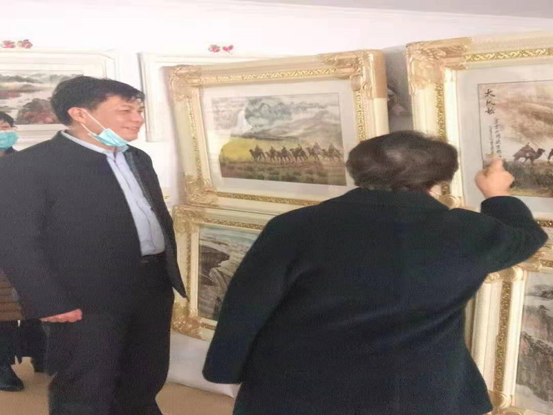 參觀中公司黨委張書記與作家張鳳蘭老師就一些作品進行了親切交流,并問候老人家近況,當得知擺放展品的家里存在用水難題時,現場辦公聯系了公司營業分公司幫助解決自來水問題,保證展覽地點的用水,老人家表示非常感激。