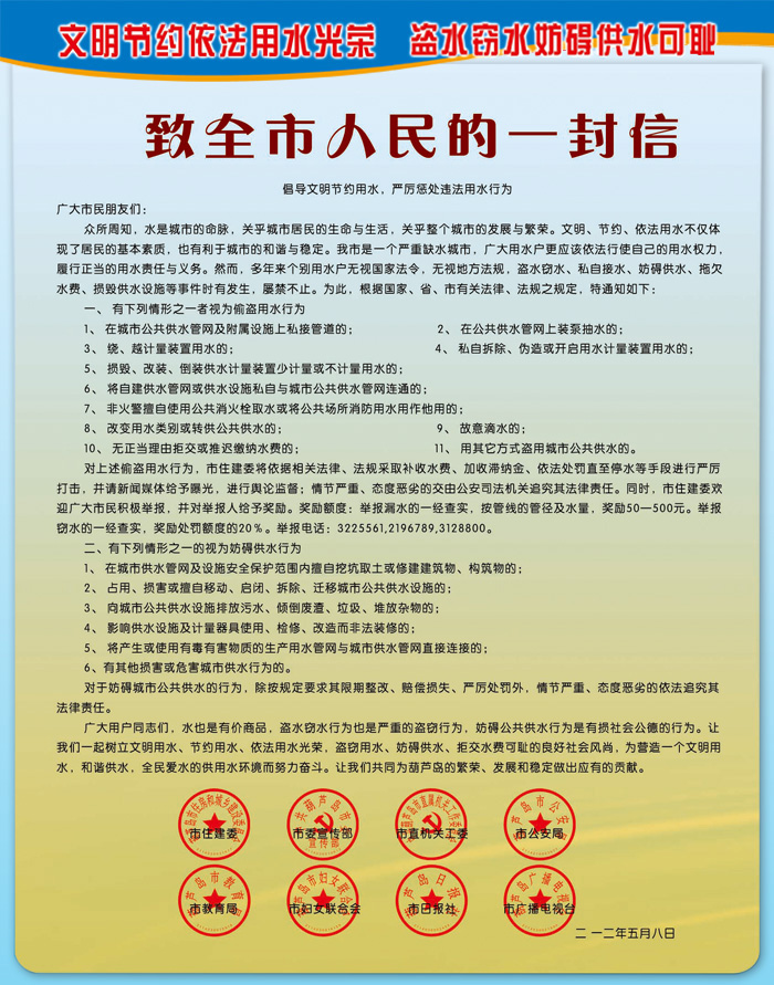 文明節約依法用水光榮 盜水竊水妨礙供水可恥