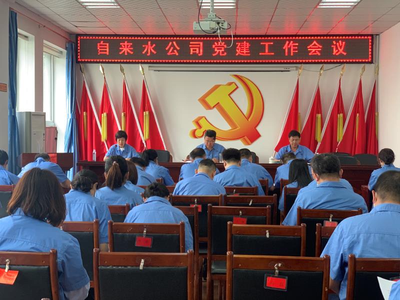 6月24日上午,市自來水公司召開黨建工作會議。公司黨委班子及擴大成員、中層正職以上干部、黨支部書記、支部委員、黨小組長參加會議。會議回顧、總結了2019年黨建工作,研究部署2020年黨建工作重點;傳達了市委組織部、市住建局有關文件精神,學習貫徹習近平總書記全國“兩會”期間重要講話精神。