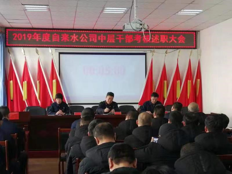最后,公司經(jīng)理李文生在講話中提出四個(gè)方面:一是對(duì)本次考核述職及測評(píng)表示肯定;二是希望干部職工針對(duì)2020年首季開門紅做好任務(wù)分解;三是做好春節(jié)期間安全供水工作,做到應(yīng)急有備;四是嚴(yán)格落實(shí)中央八項(xiàng)規(guī)定要求,過一個(gè)風(fēng)清氣正、輕松愉快的春節(jié)。