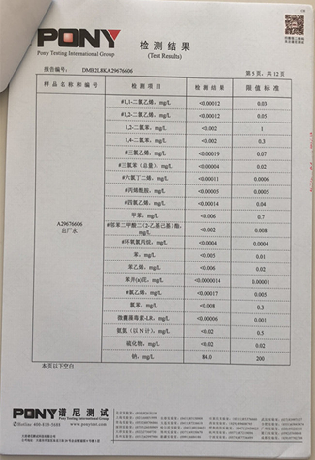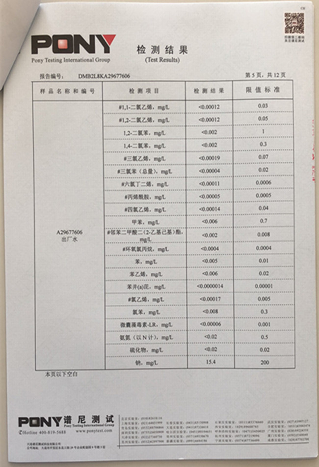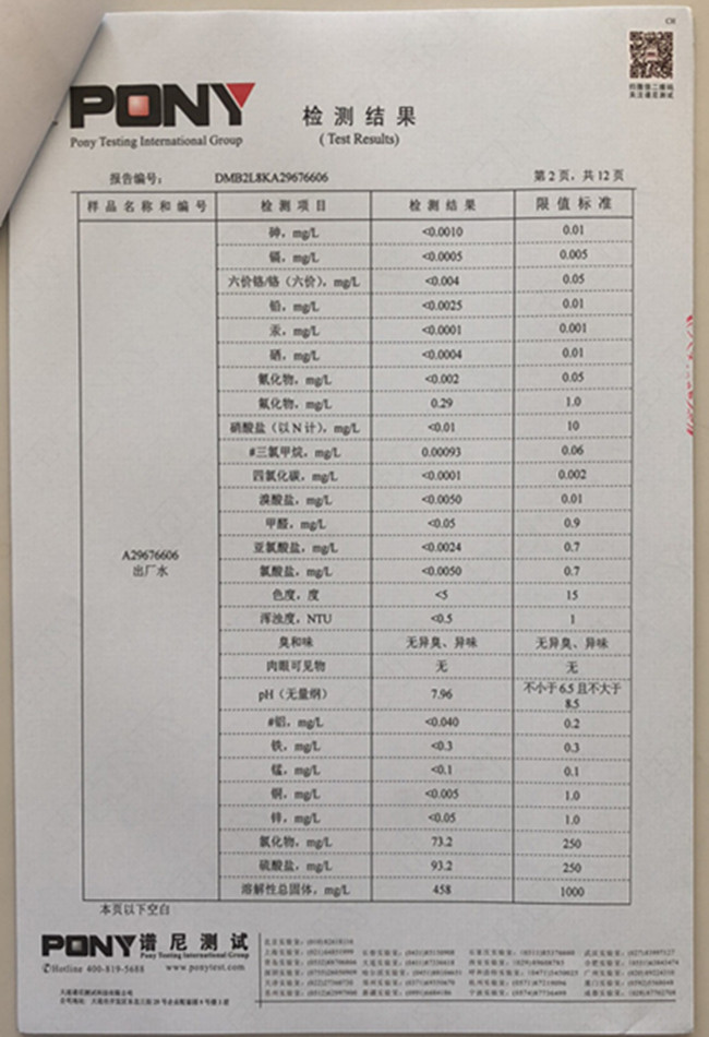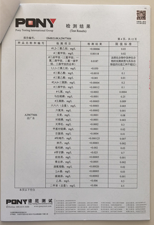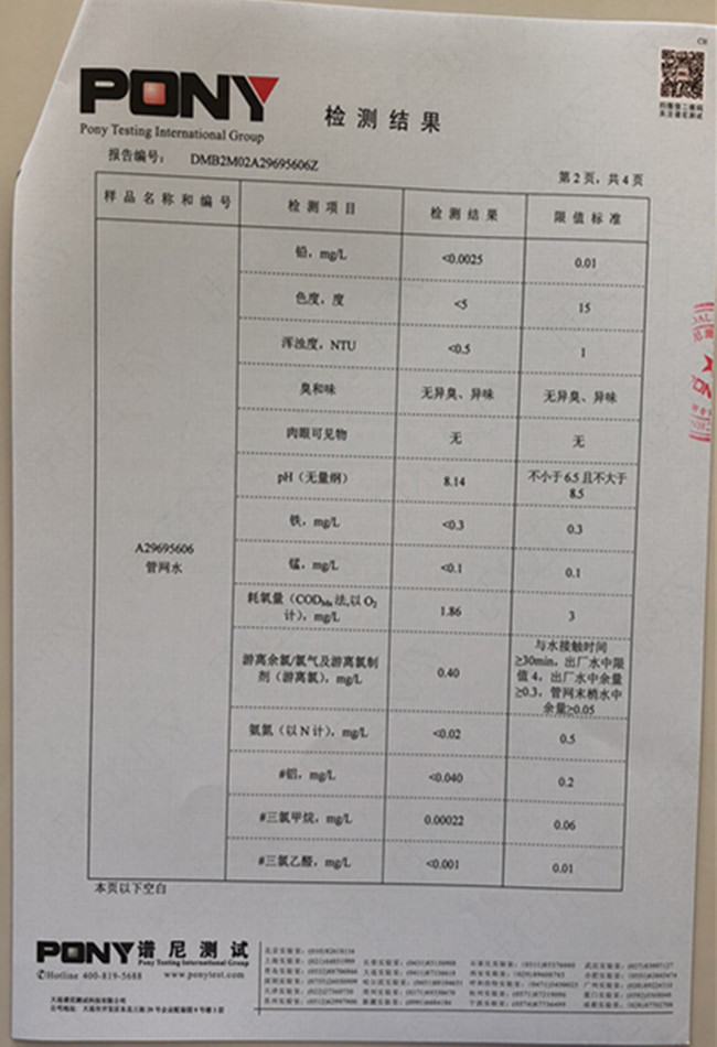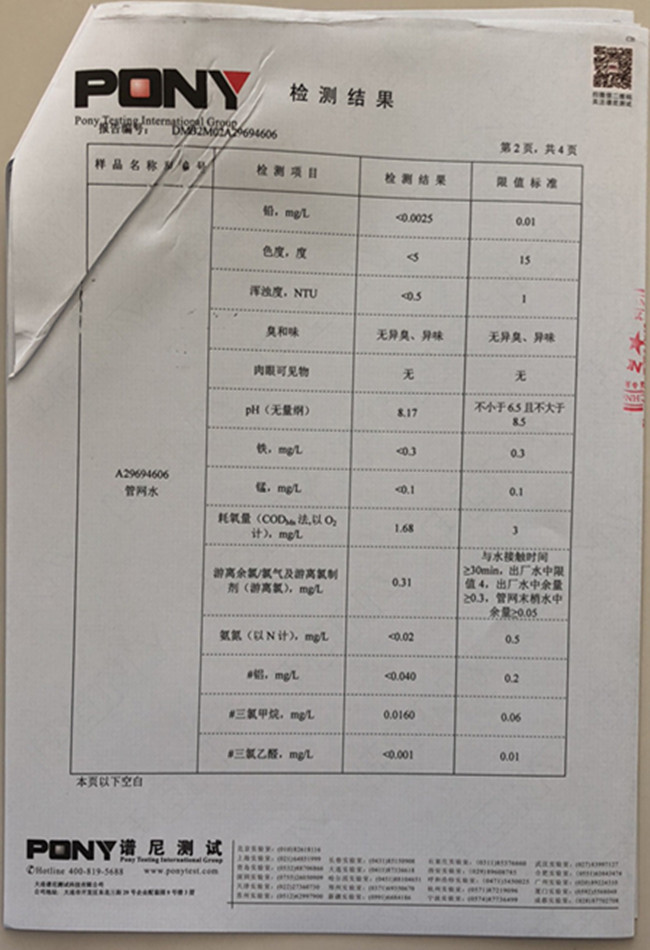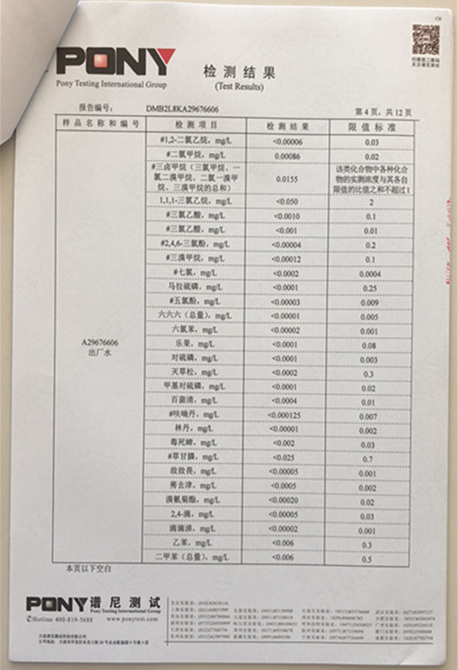 老合臺凈水廠檢測報告: