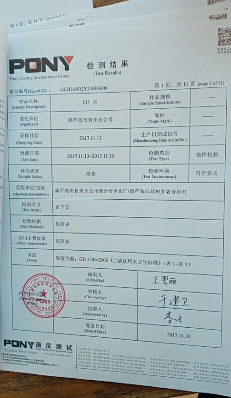水質(zhì)報(bào)告