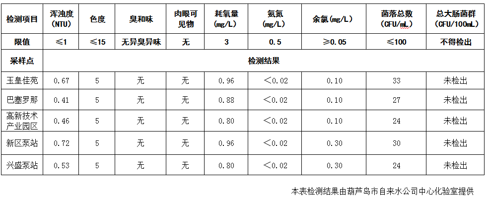 2017年5月3日葫蘆島市城市供水管網(wǎng)水質(zhì)信息