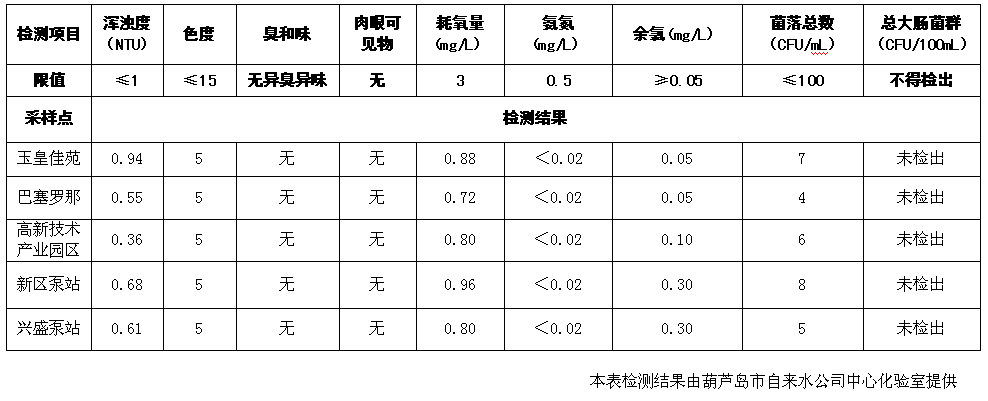 2017年1月25日葫蘆島市城市供水管網水質信息